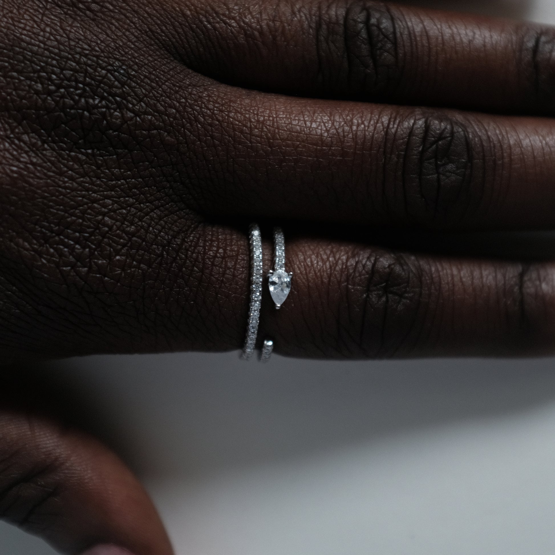 Sleek and symbolic, this adjustable wrap ring features a delicate arrow motif, accented with dazzling pavé stones for a touch of brilliance. Its minimalist yet striking design represents direction, strength, and purpose. Perfect for stacking or wearing solo as a statement of confidence and style.