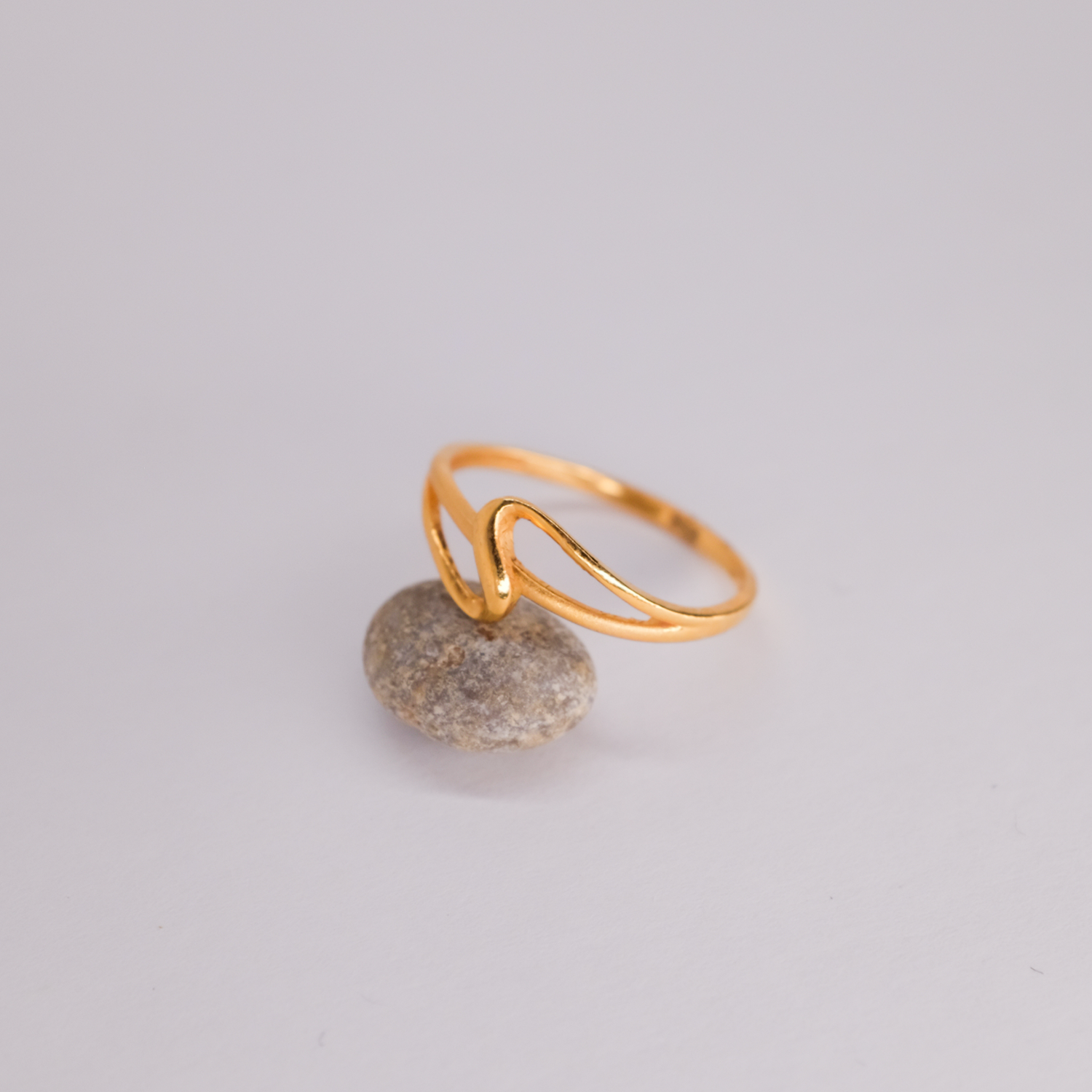 This 22K gold ring features an elegant, fluid design with an open silhouette, creating a modern and delicate look. The smooth, polished curves wrap effortlessly around the finger, offering a minimalist yet artistic touch. Lightweight and versatile, it’s perfect for everyday wear or stacking with other rings for a layered effect.