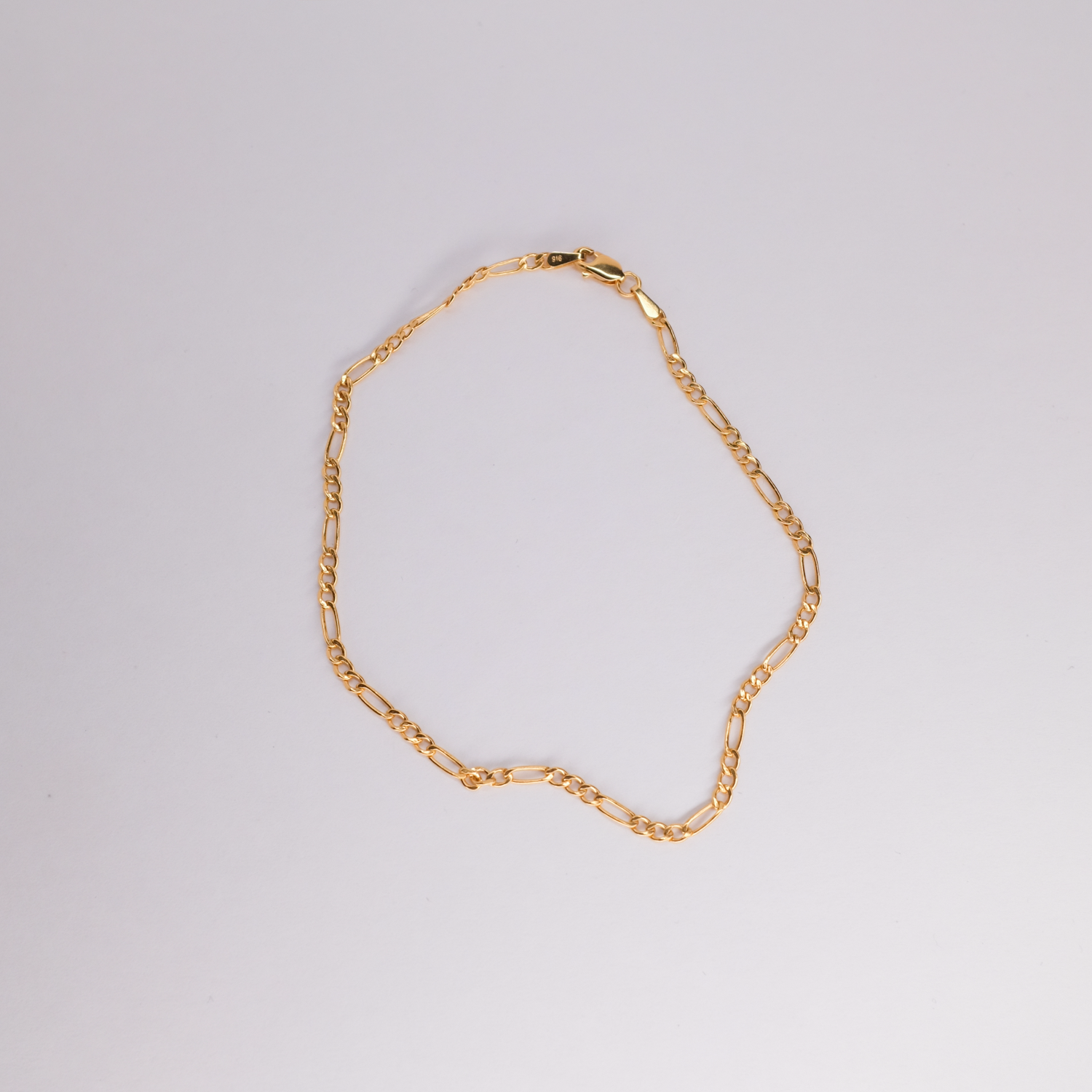 A blend of classic and contemporary, this 22K gold Figaro bracelet showcases its signature alternating link pattern. Its refined structure makes it a versatile piece, ideal for both casual and formal styling.