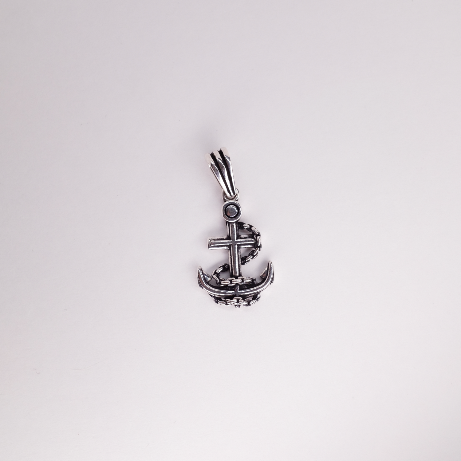 Inspired by maritime strength, this pure silver pendant features a finely detailed anchor intertwined with a bold cross. The oxidized finish adds depth to its intricate design, making it a timeless piece that blends classic nautical elements with a touch of vintage charm. Perfect for those who appreciate the sea and adventure.