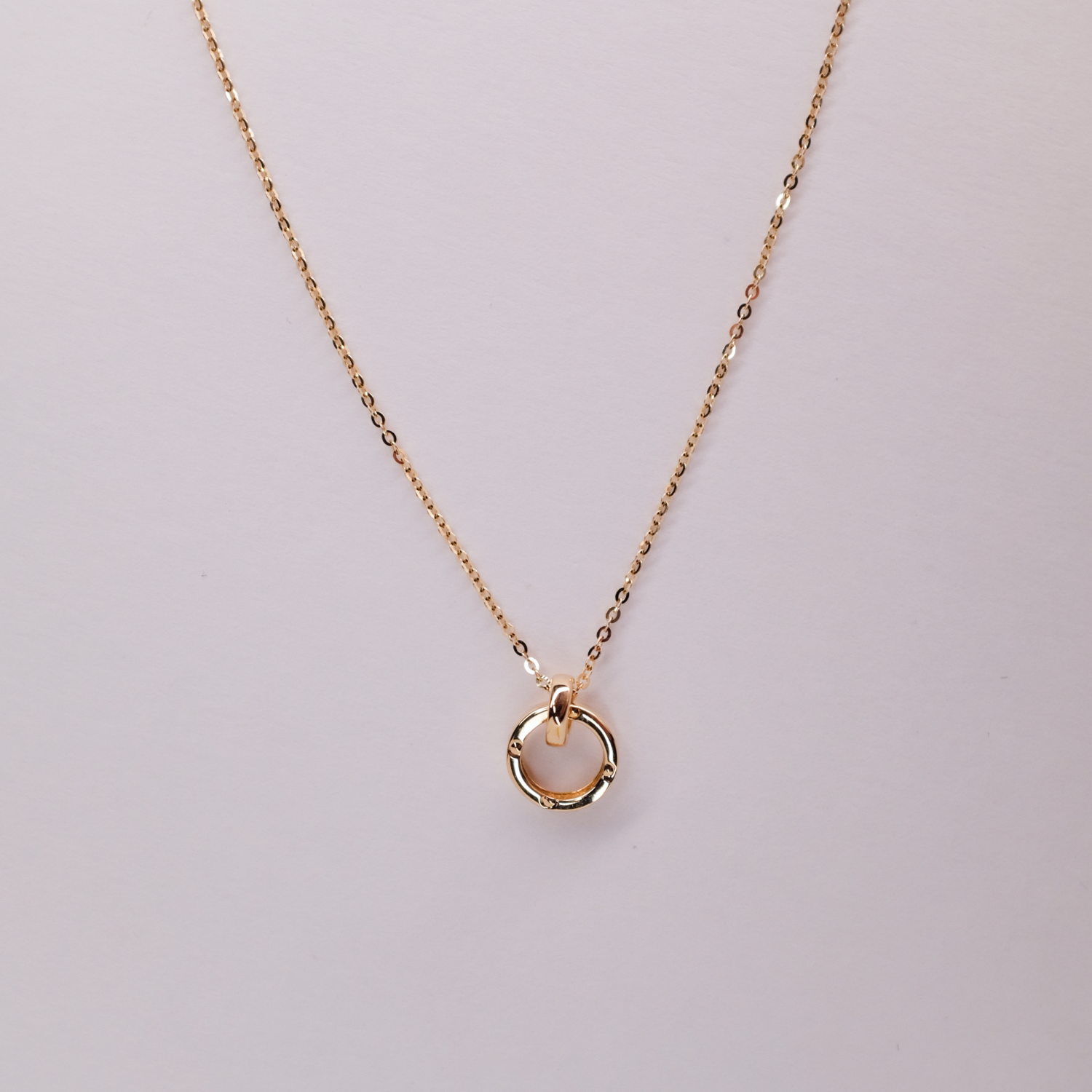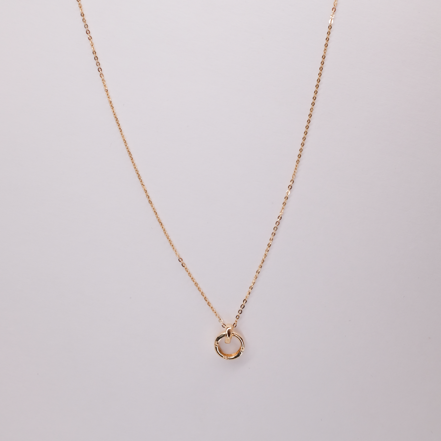 Sleek and symbolic, this 18K gold open circle necklace represents wholeness and eternity. Its delicate yet modern design makes it a versatile piece, perfect for layering or wearing solo. A timeless accessory that adds effortless elegance to any outfit.