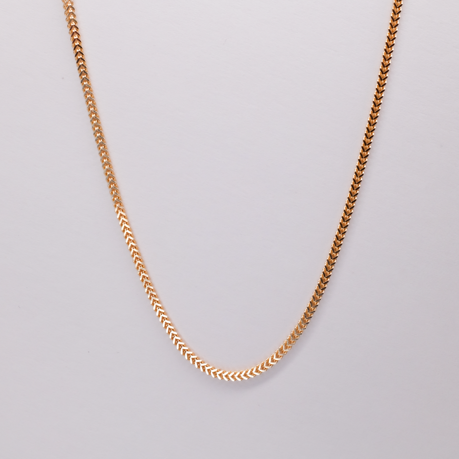 Sleek and refined, this 18K gold Franco chain necklace offers a polished and sophisticated look. Its tightly woven links create a smooth, flexible design that sits effortlessly against the skin. Ideal for layering or wearing solo, this versatile piece enhances any outfit with understated elegance. A timeless essential, it’s the perfect balance of subtlety and luxury.