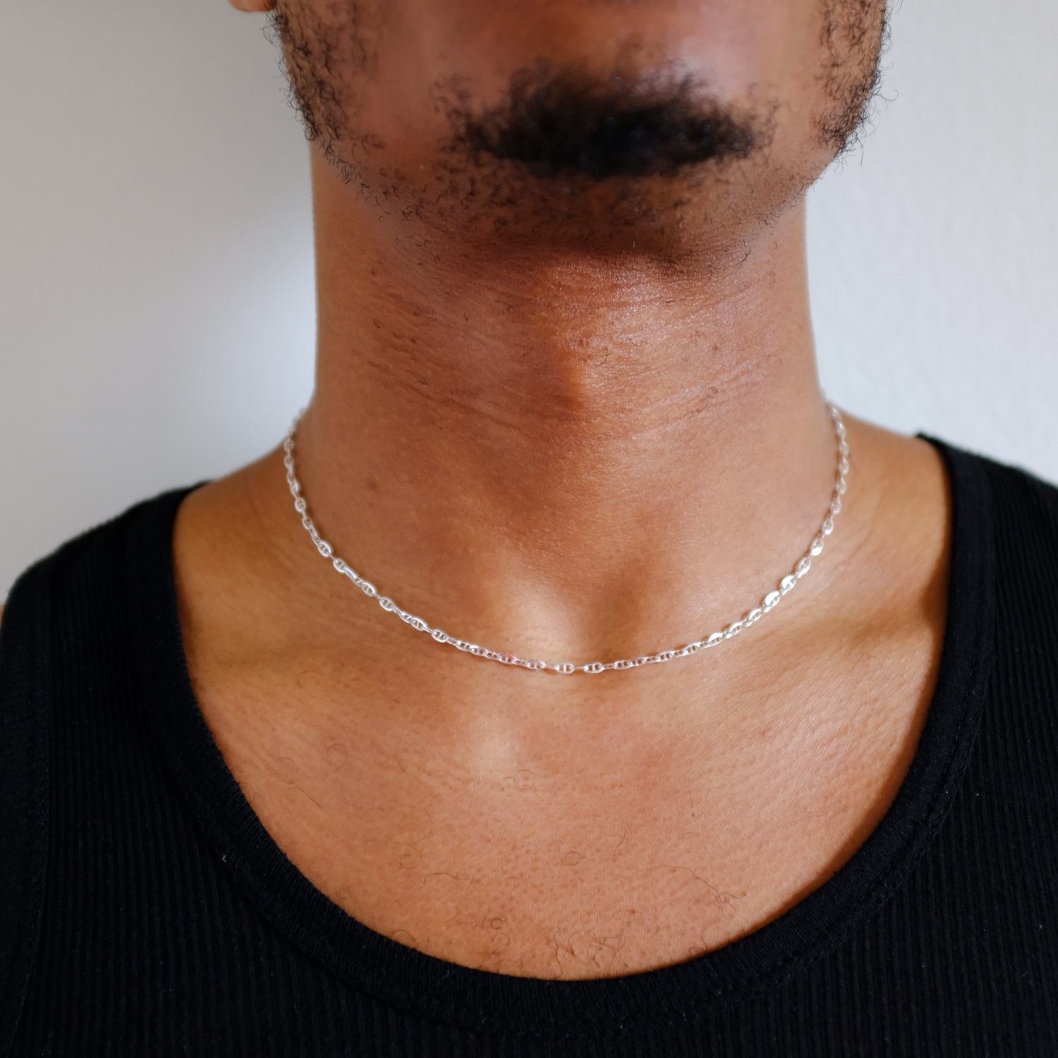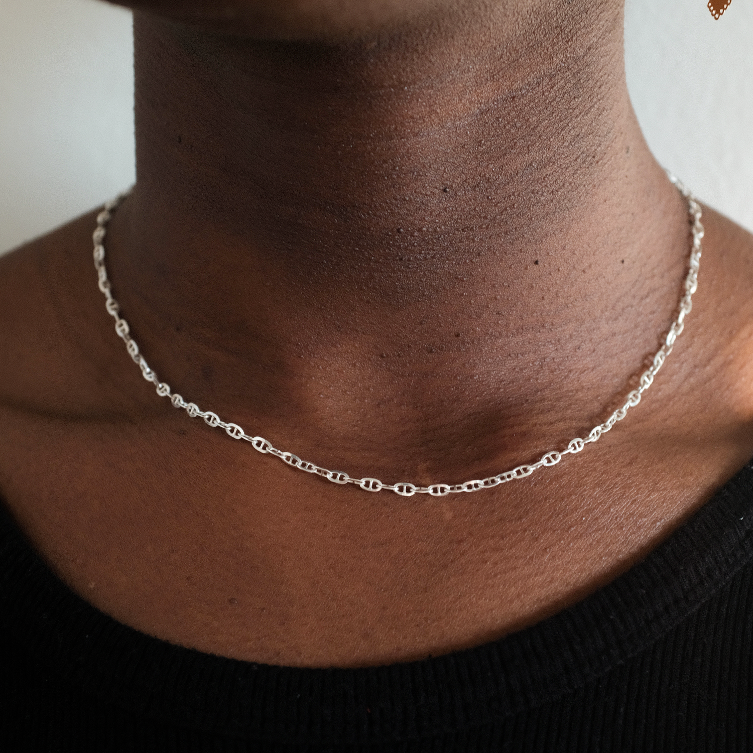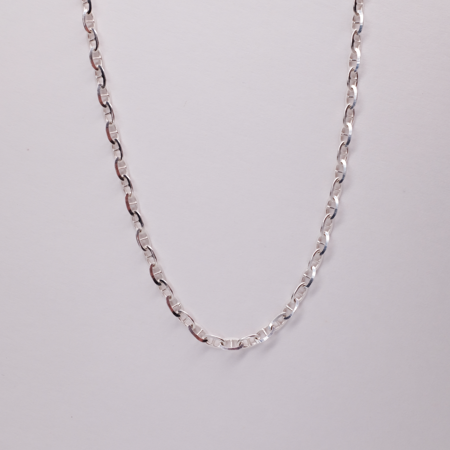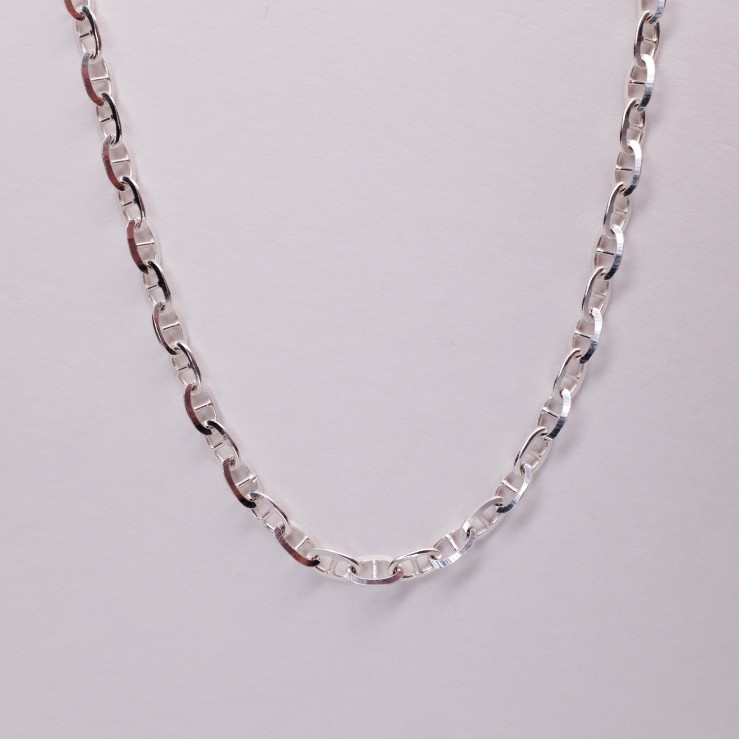 This anchor chain features interlocking flat links that create a bold yet refined look. Crafted from high-quality sterling silver, its polished surface catches the light effortlessly, making it a versatile staple for any collection. Whether worn alone or layered, this chain adds a sleek, structured touch to any outfit
