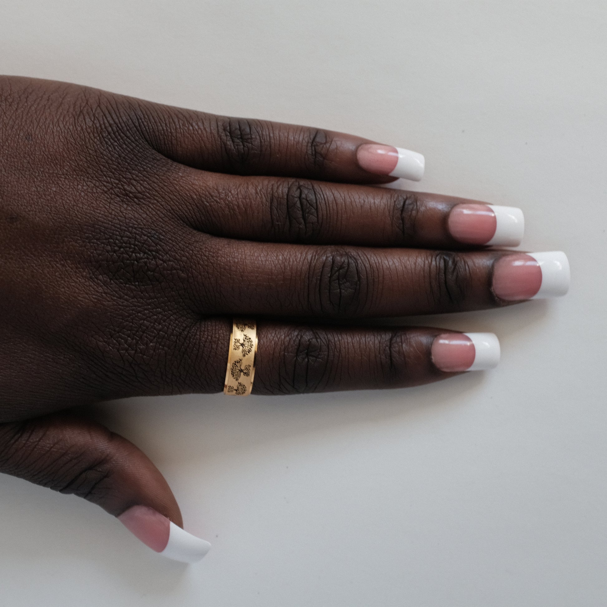 A timeless beauty, this 22K gold band is adorned with delicate floral engravings, adding a touch of vintage charm. Its refined craftsmanship makes it perfect for everyday elegance or as a meaningful gift.
