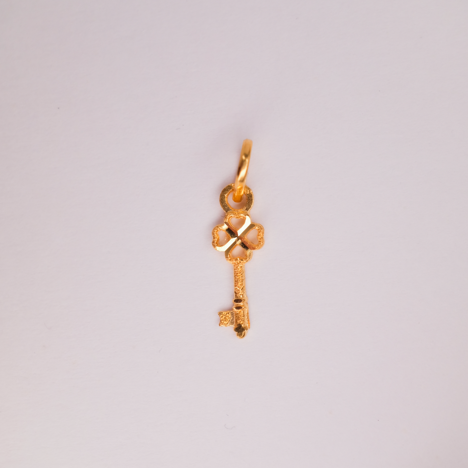 Unlock timeless elegance with this 22K gold key pendant, featuring an intricate design that symbolizes knowledge and new beginnings. A subtle yet striking piece for everyday wear.